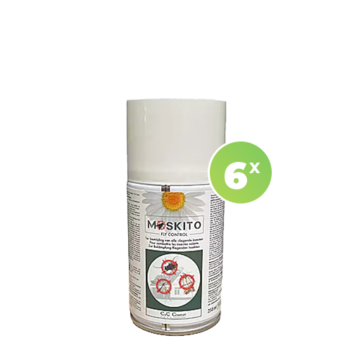 De Moskito Fly Control Spray navullingen zijn geregistreerd in Duitsland en België. De Moskito Fly Control spray navulling is niet geregistreerd in Nederland en mag daar derhalve niet verkocht of wederverkocht worden. (Gebruik in Nederland is dan ook voor eigen risico, aangezien er geen toelating voor is afgegeven.)